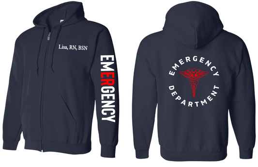 Personalized Emergency Department Zip Up Jacket Hoodies